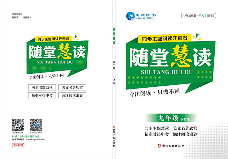閱讀內容結合單元主題對教材課文進行補充,豐富閱讀素材,突出單元主題。重讀輕練,著重培養學生閱讀興趣,將閱讀技巧轉化為自己的能力,而不是簡單地公式答題。使學生從“會讀”“會答”提高到“會寫”的境界。隨堂慧讀為廣大中學生提供一套集趣味性、知識性為一體的,對學生審美、價值觀有正確的引導的課外讀物。